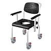Het zitdeel is voorzien van geleiderails uit polyurethaan voor het geruisloos aanbrengen of verwijderen van ondersteek of emmer. De stoel kan ook boven het toilet worden geplaatst. Het zwarte polyurethane zitdeel is eenvoudig te verwijderen om te reinigen.