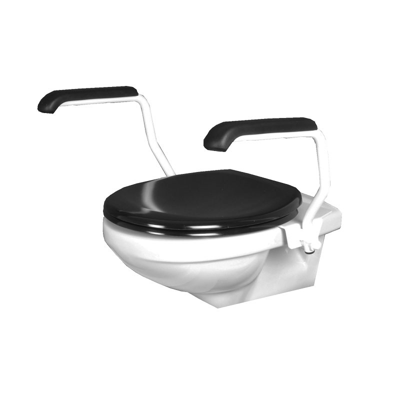 De armsteunen zijn voorzien van armleggerkussens voor extra comfort en zijn afzonderlijk opklapbaar. Deze toiletbeugelset wordt geleverd met een soft close toiletzitting met deksel zodat de zitting en deksel automatisch geruisloos sluiten.